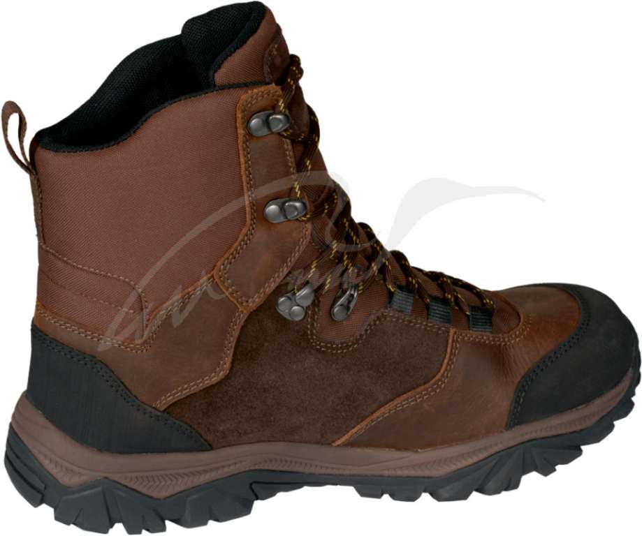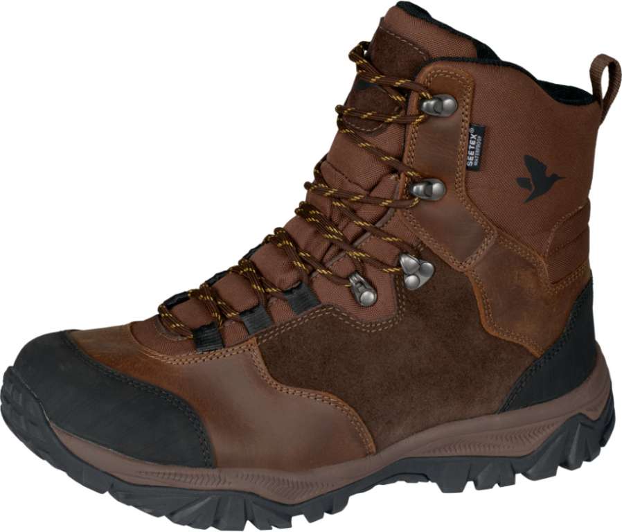 Ботинки выполнены из комбинаци кожи и замши и имеют уплотненные прорезиненным материалом носок и пятку. Модель оснащена водонепроницаемой и дышащей мембраной SEETEX®, которая гарантирует сухость ногам на протяжении всей охоты.