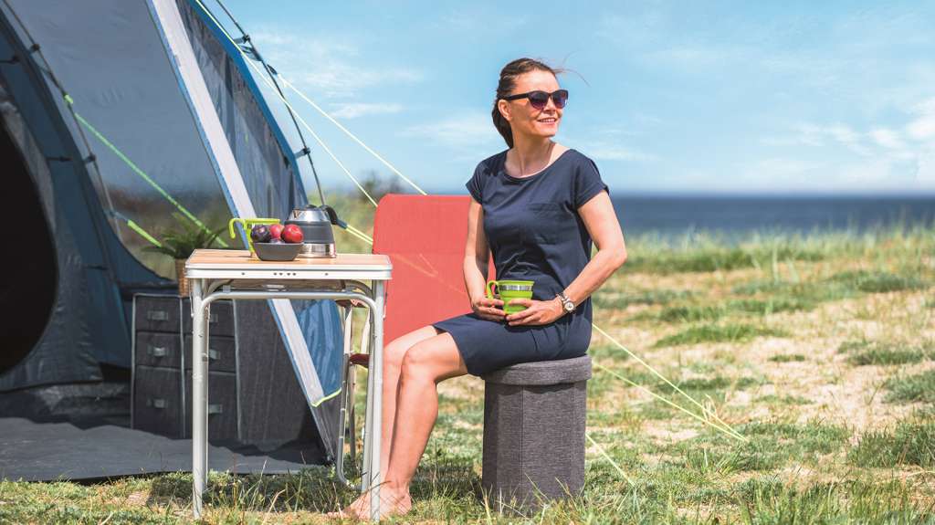 Органайзер кемпинговый Outwell Dawlish High Seat & Storage - разумный способ сэкономить место: удобный обеденный стул и бокс для хранения вещей. Сиденье с мягким верхом можно открыть и положить одеяло, туристическое снаряжение, коробки от настольных игр и многое другое. Ткань легко чистится, а прочное основание обеспечивает жесткость конструкции в разложенном виде. Органайзер выдерживает нагрузку до 100 кг, имеет полезный объем 34 л, его можно использовать в условиях повышенной влажности.