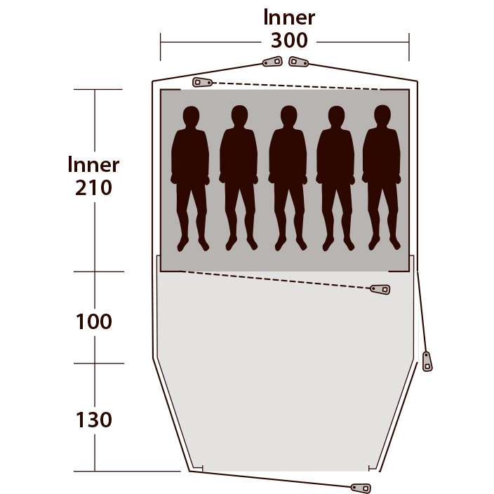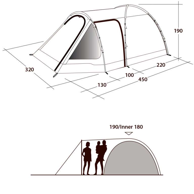 Внутренняя палатка (Д х Ш х В): 210 х 300 х 180 см