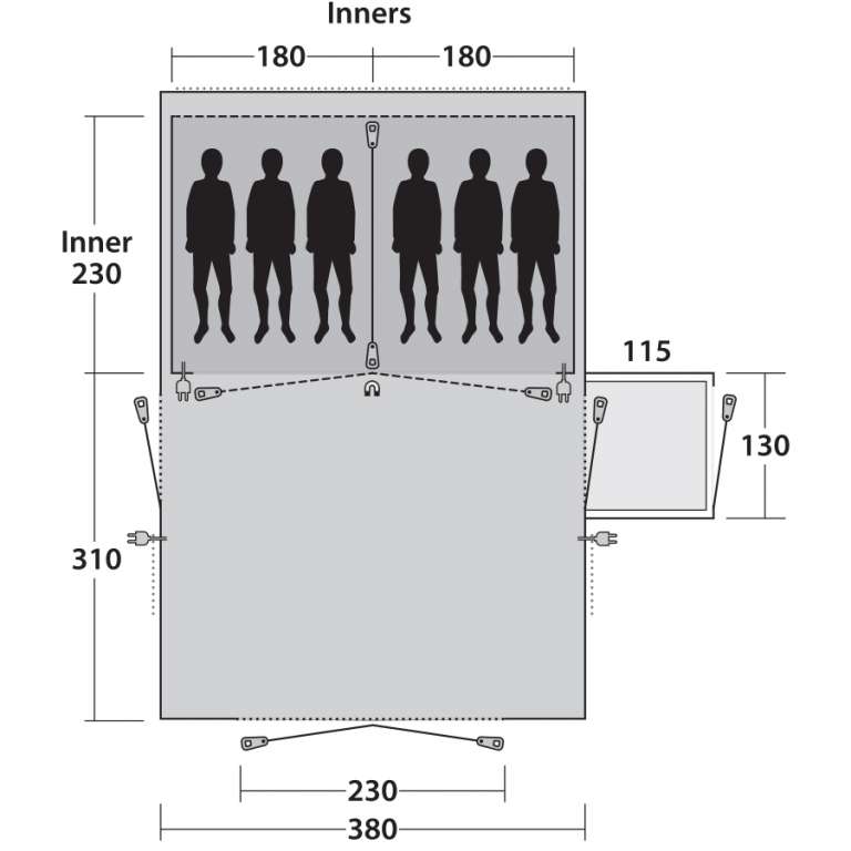 Внутренняя палатка (Д х Ш х В): 230 х 360 х 205 см