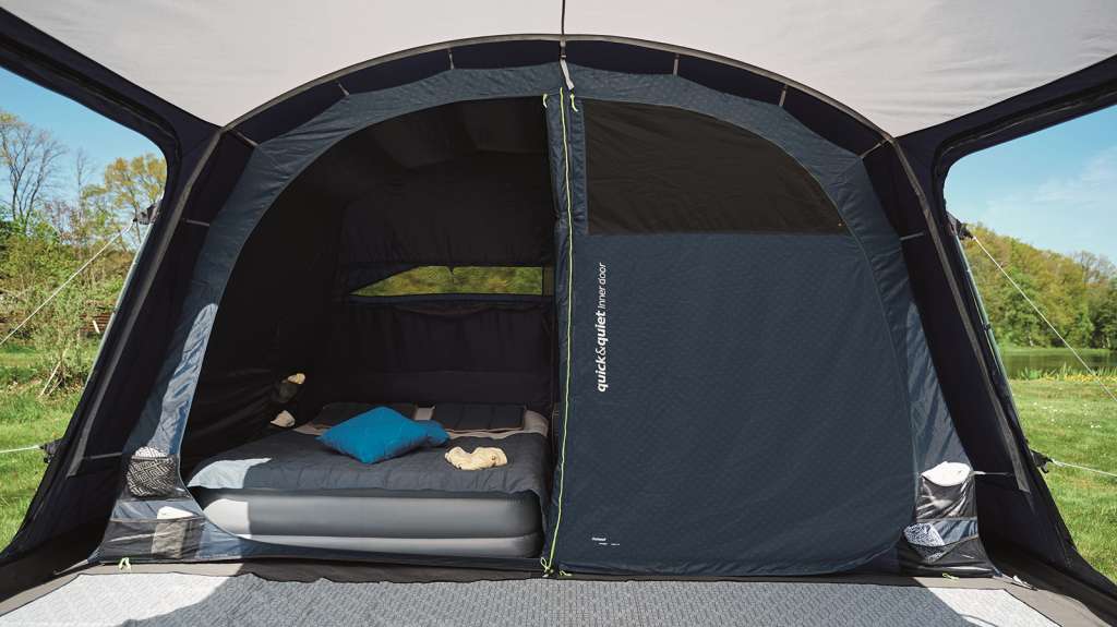 Outwell Easy Access System with mesh - главная дверь с москитной сеткой скручивается в одну сторону, а пол палатки находится заподлицо с землей для безопасного и легкого доступа.