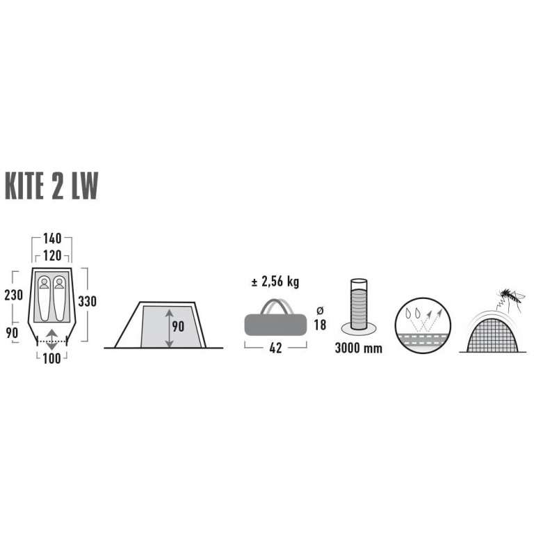 High Peak Kite 2 LW Pesto/Red (10343) имеет удлиненное спальное место длиной 230 см и подходит даже для баскетболиста. Она рассчитана на двоих человек и является отличной палаткой для активного отдыха.