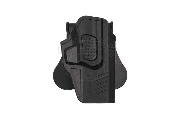 Кобура пластикова Umarex для Glock17-19 Gen 3-5, і 19X виробляється з міцного полімеру. Регулювання на 360 градусів дозволяє вибрати зручний варіант носіння. Надійна фіксація пістолета з пружинної кнопкою розблокування. Прорезиненная м'яка вставка на лопатці збереже покриття.