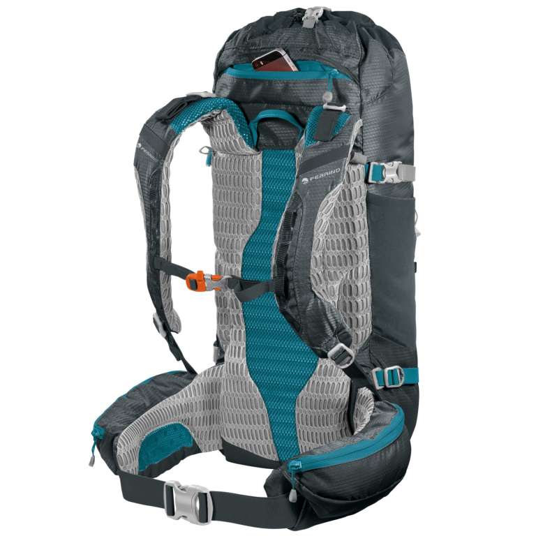 Compatible H2O Bag - данный рюкзак совместим и может быть оснащен фирменной гидратационной системой Ferrino емкостью один, два или три литра, или любой другой питьевой системой соответствующего литража. Рюкзак имеет необходимое отделение для размещения и петлю для крепления питьевой системы, а также все необходимые отверстия и зажимы для фиксации питьевого патрубка.