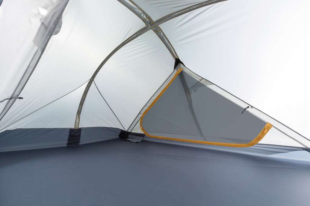 - Конструкцией предусмотрено два вентиляционных окна, расположенных над входами друг напротив друга. Система вентиляции Camera Air создает большую воздушную камеру между внешним тентом и внутренней палаткой, которая содействует свободной циркуляции воздуха вокруг внутренней палатки. С одной стороны, это избавляет от появления конденсата внутри, а с другой стороны, воздух является лучшей теплоизоляционной прослойкой.