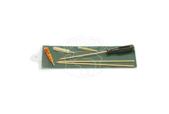 Набір для чищення в ПВХ блістері, латунний шомпол 3-х секційний, 3 йоржа (Щетина латунний, щетина, пуховик)