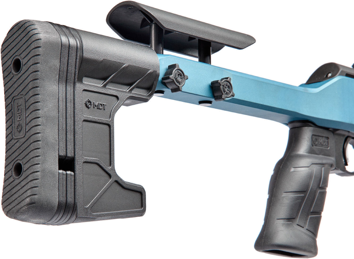 Приклад имеет затыльник с закругленными углами, что позволяет избежать цепляние одежды или экипировки во время вскидки оружия. Некоторые модели имеют регулируемый по высоте подщёчник, который позволяет настроить оружие под стрелка индивидуально.