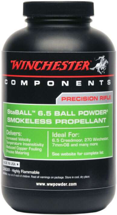 Нечувствительный к температуре сферический порох StaBALL идеально подходит для патронов .6 Creedmoor, 6GT, 6.5 Creedmoor, 7MM-08, 270 Winchester и других.