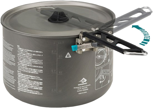 Котелок Sea To Summit Alpha Pot – классический элемент походной утвари, выведенный на новый уровень совершенства. Применяется для кипячения воды, варки и тушения пищи над пламенем горелки. Корпус выполнен из легкого алюминиевого сплава с анодированным покрытием, придающим поверхности антипригарные свойства. Рукоятка Pivot-Lock имеет складную конструкцию для удобства транспортировки и надежно фиксируется в разложенном положении. На внутренней стороне борта нанесена градиентная шкала для контроля объема содержимого. Крышка снабжена специальным силиконовым держателем для ее фиксации на бортике котелка, в ней имеются также отверстия для удобства слива воды. Основание имеет специальную стабилизирующую текстуру. Модельный ряд Sea To Summit Alpha Pot состоит из вариантов на 1.2, 1.9, 2.0, 2.7, и 3.7 литра. В котелке Sea To Summit Alpha Pot закипятить воду для чая, сварить кофе или другую еду не составит особого труда.