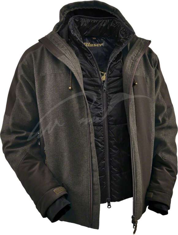 Куртка Blaser Vintage 2in1 Luis складається із зовнішньої полегшеної куртки з водо - і вітронепроникної мембраною RAMBRANE, і знімним внутрішнім жилетом з утеплювачем Primalotf. З'єднуються між собою за допомогою блискавки.