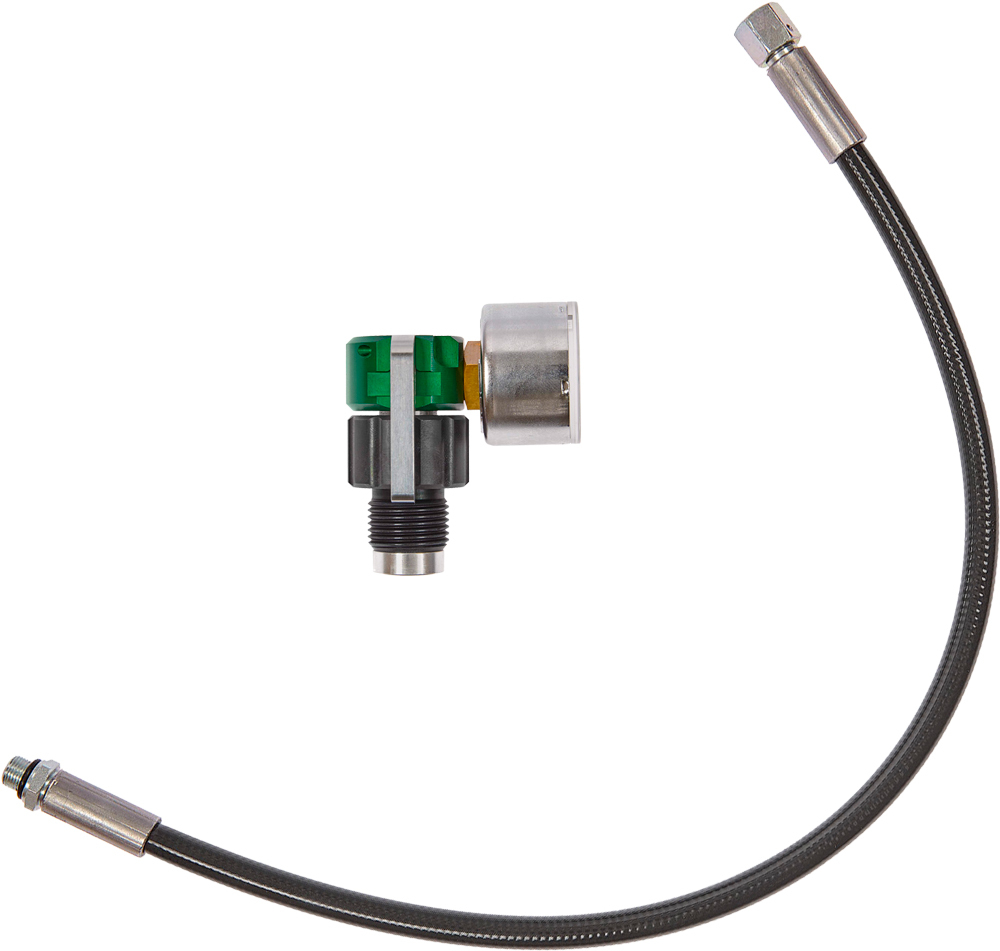 Заправочная станция предназначена для эксплуатации совместно с баллоном высокого давления. В комплект входит шланг и манометр.