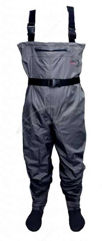 Вейдерси Extreme Fishing PSS-W4 – незамінний атрибут, як для початківця, так і для професійного рибалки – спінінгіста. Вейдерси допоможуть довго ловити рибу перебуваючи по пояс у воді, не відчуваючи жодного дискомфорту. Виконані з високоякісного дихаючого неопренового матеріалу, який ефективно виводить зайву вологу назовні. Можна використовувати для риболовлі в прохолодній і навіть холодній воді, досить просто підчепити термобілизна. Передбачені м'які помочи, які зручно і надійно застібаються, практично не відчуваються при ходьбі, не тиснуть, не натирають. Також присутній спеціальний нагрудний кишеню, при необхідності забезпечує додатковий простір для розміщення різних дрібних речей. Області в районі колін посилені, дозволять ставати на них, щоб змінити оснастку або зробити фотосесію з пійманим трофеєм.