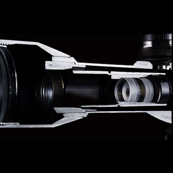 Ударостойкий корпус выполнен в виде монолитной алюминиевой трубы, в которой надежно закреплены все оптические элементы. Конструкция отлично справляется как с разновекторной отдачей пружинно-поршневой пневматики, так и с отдачей огнестрельного нарезного и гладкоствольного оружия крупных калибров. Корпус покрыт двухсторонним матовым анодированием черного цвета. Снаружи покрытие не стирается и препятствует появлению царапин. Внутри покрытие рассеивает свет и не позволяет распространяться бликам и переотражениям. Кольцо трансфокатора получило резиновую профилированную накатку, благодаря чему процесс смены увеличения стал еще более удобным и точным. Корпус герметичен, защищен от попадания воды и наполнен сухим азотом во избежание запотевания оптики изнутри при перепаде температур. Объектив и окуляр имеют резьбу, позволяющую присоединять дополнительные аксессуары, такие как солнцезащитные бленды и крышки типа Flip-Up.