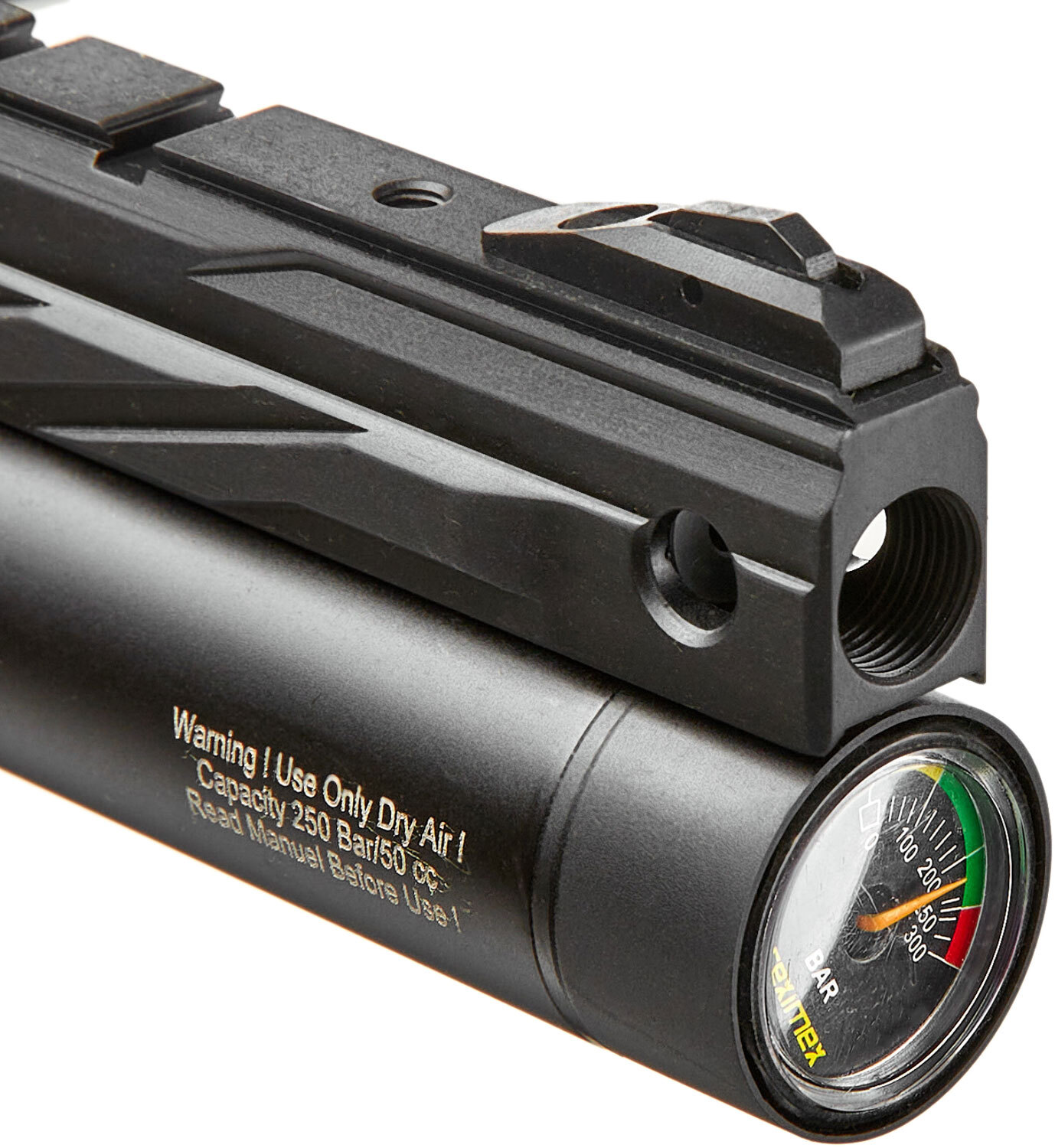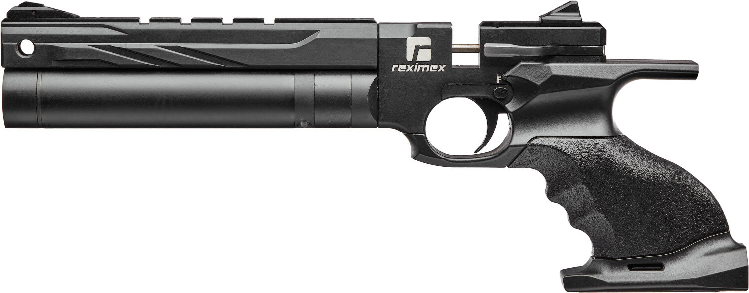 Reximex Rp - это пневматический пистолет сделан по системе предварительной накачки (PCP). Корпус выполнен из прочного полимера и алюминия, имеет съемный полимерный приклад. Баллон с воздухом установлен под ствол. Подача патронов осуществляется из роторного магазина. Прицельные приспособления имеются в виде целика и мушки.