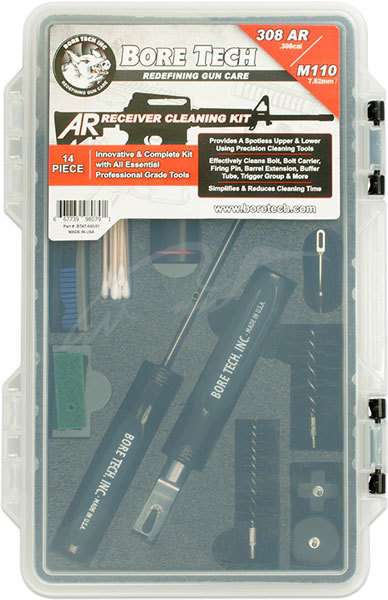 Bore Tech AR Complete Receiver Cleaning Kit – це інноваційний комплексний набір для ретельного очищення верхнього і нижнього ресиверів зброї на платформі AR-10 і AR-15. Комплекти складаються з професійних інструментів, завдяки яким чистка стане більш ефективною і буде віднімати у Вас менше часу.