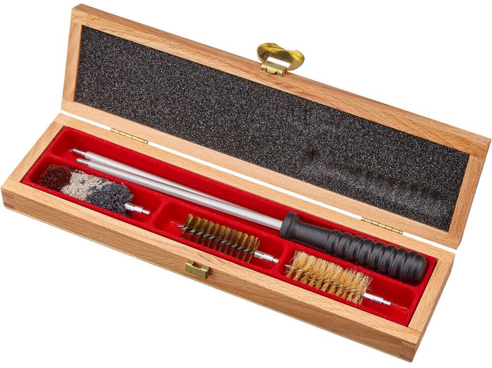 Набор MEGAline для чистки гладкоствольного, огнестрельного оружия 12-го калибра. В деревянном кейсе.