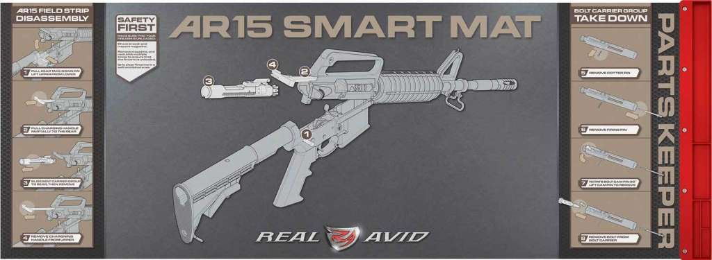 Коврики от компании Real Avid разработаны для того чтобы облегчить стрелку задачу по чистке оружия. Smart Mat защищают рабочую поверхность и оружие, сохраняя все детали упорядоченными, тем самым позволяя держать все под рукой. Коврики изготовлены из прочного материала, устойчивого к загрязнению чистящими средствами. Иллюстрированный принт, на рабочей поверхности показывает правильный порядок разборки оружия. Для мелких металлических деталей на коврике закреплены специальные намагниченные лотки.