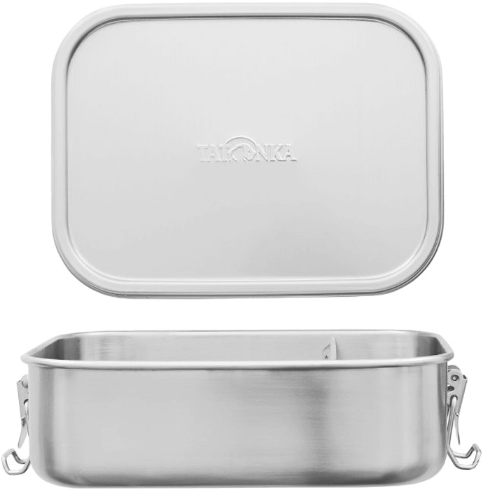 Контейнер для еды Tatonka Lunch Box II предназначен для пищевых продуктов. Он выполнен из прочной нержавеющей стали марки 18/10, которая устойчива к механическим повреждениям, фруктовым кислотам и не впитывает запахи. Внутренняя перегородка позволяет отделять кашу от овощей или салата. В крышку встроена силиконовая прокладка, благодаря которой бокс герметично закрывается, для большей надежности предусмотрены два зажима по бокам, которые фиксируют и не допустят самопроизвольно открыться контейнеру в рюкзаке. Пищевой бокс Tatonka Lunch Box II можно мыть в посудомоечной машине.