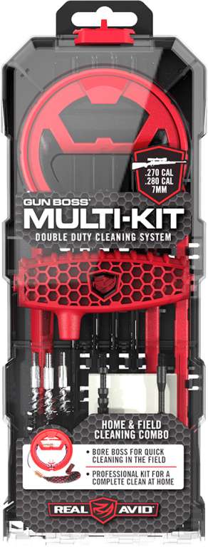 Наборы для чистки Real Avid Gun Boss Multi-Kit прекрасно подойдут как для чистки в мастерской, так и на открытой местности. Существует несколько модификаций таких наборов, однако всех их объединяет примерно одинаковая комплектация. Закрытые в компактный пластиковый бокс, наполненные самым необходимым для данной операции, они станут надёжными союзниками оружейника.