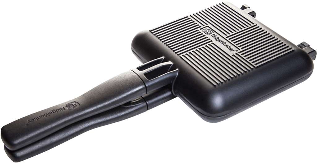 Тостер RidgeMonkey Connect Compact Toaster - компактное приспособления для приготовления пищи на газовых плитах, в том числе в походных или кемпинговых условиях. Он представляет собой две сковороды с гладкой поверхностью, которые можно разъединить и использовать по отдельности, а в соединённом виде это будет сковорода с крышкой для приготовления тушеных блюд. Фторполимерное антипригарное покрытие позволяет готовить с минимальным количеством масла и значительно облегчает мытьё посуды после использования. В ручках тостера находится магнитный фиксатор, предотвращающий самостоятельное его открытие, они имеют съёмную конструкцию для удобства транспортировки. В комплекте с тостером RidgeMonkey Connect Compact Toaster поставляется набор кухонных принадлежностей для приготовления различных блюд и всё это компактно укладывается в мягкий неопреновый чехол.