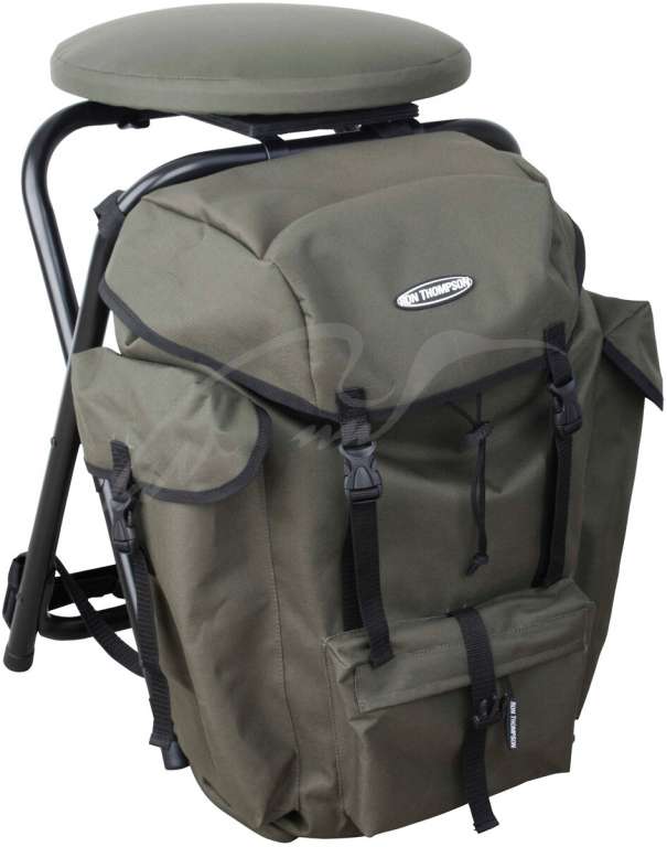 Рюкзак Ron Thompson Heavy Duty 360 Backpack Chair со складным стулом используется рыболовами для ходовой или зимней рыбалки, а также охотниками во время загона. Материал рюкзака – прочный полиэстер 600D. Рама стула выполнена из стальных труб диаметром 22 мм, которые покрыты порошковой краской для долговечности и противостояния механическим повреждениям и коррозии. В верхней части стула имеется пластиковое сидение в форме диска, которое вращается на 360 градусов. Сам рюкзак имеет одно просторное основное отделение и 3 внешних кармана.