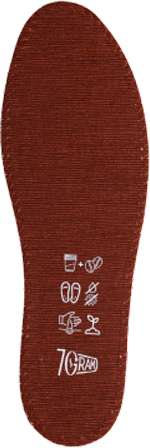 — Основний шар з унікального композитного матеріалу, що складається з перероблених паперових стаканчиків, попередньо очищених від пластику, і кавової макухи — натурального абсорбенту, який швидко сохне, підтримує відчуття сухості і забезпечує приємний кавовий запах навіть після 12 години носіння взуття.