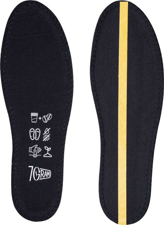 — Основной шар из уникального композитного материала, состоящего из переработанных бумажных стаканчиков, предварительно очищенных от пластика, и кофейного жмыха — натурального абсорбента, который быстро сохнет, поддерживает чувство сухости и обеспечивает приятный кофейный запах даже после 12 часов ношения обуви.