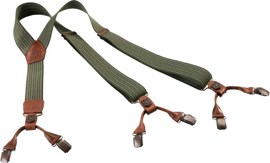 R1449 - охотничьи подтяжки с кожаными элементами и металлическими зажимами с пластиковыми вставками. Размер регулируется.