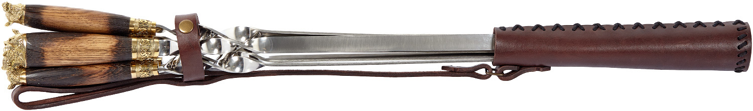 - Кожаный колчан для удобства переноски и хранения шампуров.