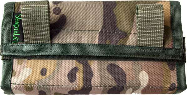 Поясной патронташ закрытого типа Shaptala 9026 рассчитан на шесть патронов 12 калибра. Крепится при помощи застежек на липе к тактическому или другим ремням. Патронташ закрывается на липучки. На клапане есть петли из стропы для удобного открывания. Конструкция патронташа усилена пластиком, что облегчает использование.