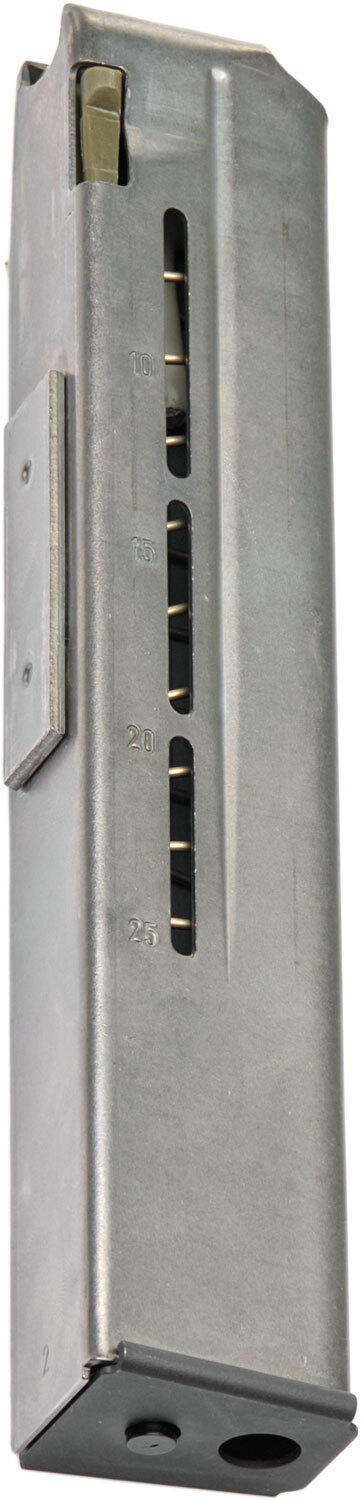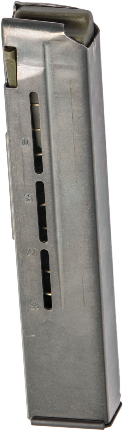 Съемный коробчатый магазин для карабина Steyr Mannlicher AUG в калибре 9х21. Изготовлен из стали. Емкость - 25 патронов.