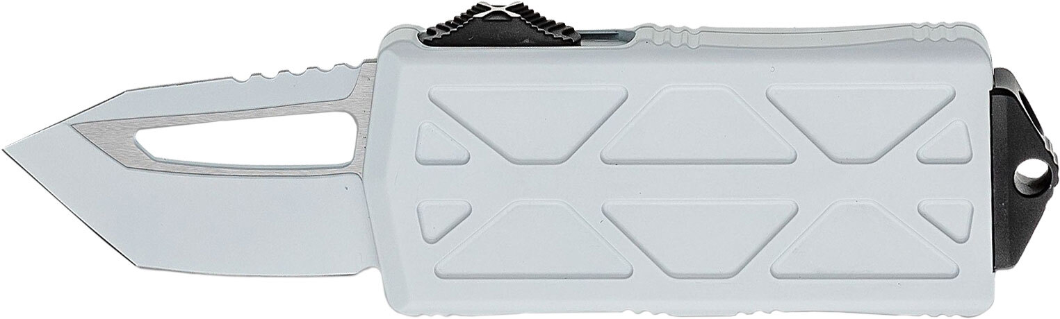 Очередная модель с отсылкой к саге “Звездные Войны”, нож с автоматическим выбросом клинка Microtech Stormtrooper (Штурмовик) назван в честь элитных воинов Галактической Империи Шива Палпатина. Рукоять и покрытие клинка – белого цвета. На клипсе – герб Галактической Империи (Imperial Crest).