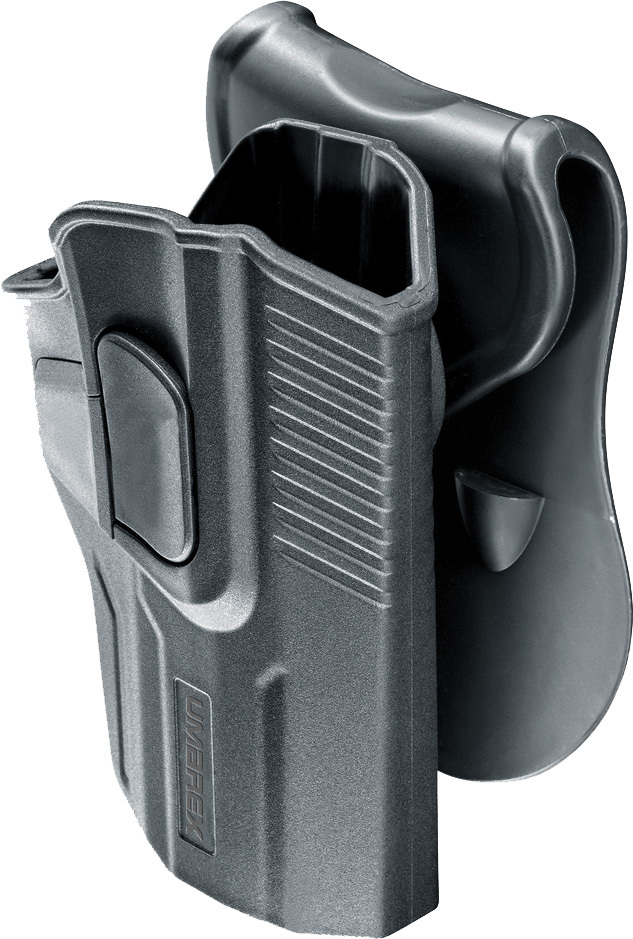 Быстросъемная поворотная кобура для пистолетов Heckler & Koch USP, P8 и Walther PPQ M2. Выполнена из прочного полимера, имеет пружинную кнопку разблокировки и диапазон регулировки 360°.