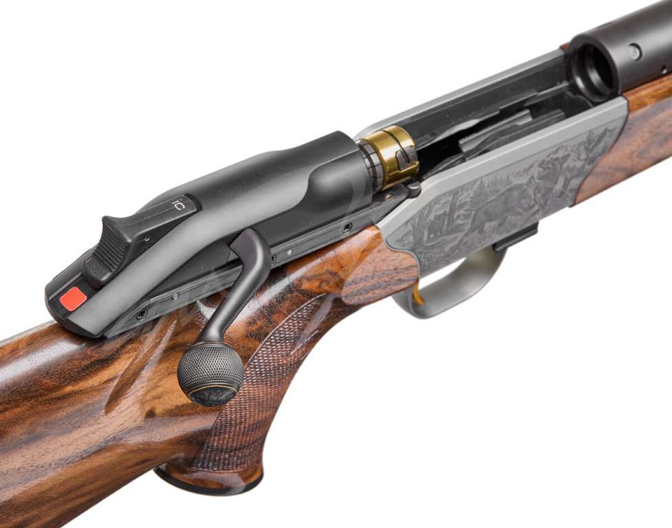 Знаменитый продольно-скользящий затвор прямого действия имеет цанговую личину с большей площадью запирания (увеличилась на 45% в сравнении с предшественником). Запирание цангой происходит непосредственно в стволе за патронником, без поворотного движения. Радиальный затвор Blaser является залогом надежности и превосходной кучности, о чем говорят успешно пройденные испытания в лаборатории DEVA давлением в 14 500 Бар!