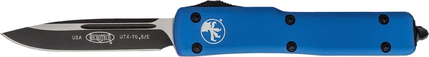 Microtech UTX-70 – один из самых компактных ножей с фронтальным выбросом клинка. При массе менее 40 г его размеры составляют всего лишь 70% от модели Ultratech, но при этом UTX-70 полностью сохранил функциональность полноразмерного ножа.