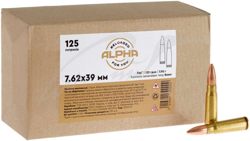 Модель: | Патроны ALPHA 7.62х39 охотничьи |