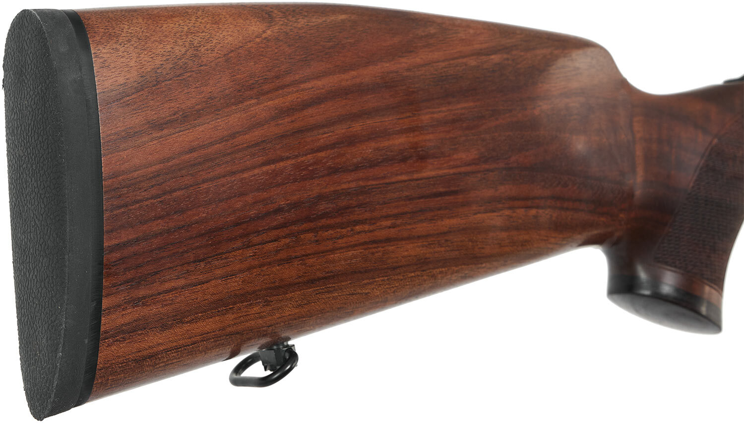 Авторы изделия утверждают, что это – самая тонкая однозарядная винтовка из всех, когда-либо выходивших из цехов Merkel. Ансамбль изящных линий начинается от затыльника приклада и, через гребень профиля Hogs-back, продолжается вытянутым цевьем.