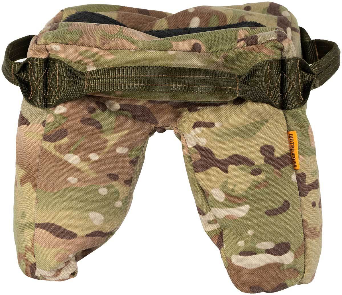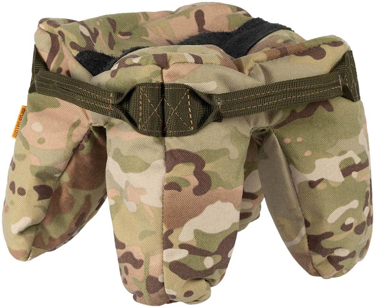 Баррикадный - то есть тот, который размещается перед стрелком, под цевьем - мешок является альтернативой сошкам и позволяет удобно расположить оружие на поверхностях, которые по каким-либо причинам не подходят для сошек.