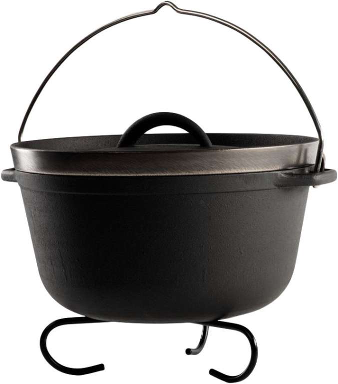 Котелок GSI Litecast Dutch Oven подойдет для кемпинга, рыбалки или просто выездов на природу. Он изготовлен из прочного и долговечного чугуна, который при нагревании не выделяет вредных веществ для организма человека. Благодаря использованию современных технологий, удалось уменьшить массу изделия на 25-40% чем у обычных чугунных казанков. Полированное днище позволяет использовать посудину не только на природе, во время приготовления блюд на костре, но и в домашних условиях для индукционной плиты. Особая форма быстро и равномерно распределяет тепло, что значительно упрощает процедуру приготовления пищи. По бокам расположены удобные ручки. Поставляется в комплекте с подставкой и крышкой.