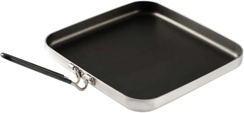 Сковорода GSI Bugaboo Square Frypan - для удобства во время хранения имеет квадратную форму. Она выполнена из легкого и прочного материала - алюминия, благодаря чему кухонная утварь устойчива к коррозии и способна прослужить долгие годы. С внутренней стороны нанесено три слоя антипригарного покрытия - Teflon Classic. Ручка - SureLock, оснащена силиконовой накладкой, которая не нагревается. Для удобства при транспортировке ручку можно снять или сложить.