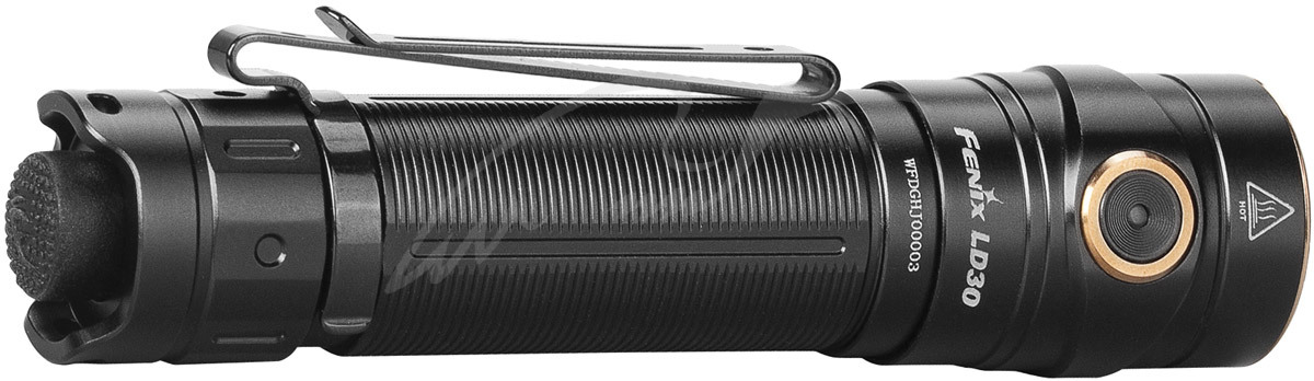 Fenix LD30 - очень компактный фонарь для повседневного использования. Корпус выполнен из авиационного алюминия с защитой от пыли и влаги по стандарту - IPX 68, благодаря чему устройство можно использовать под дождем и даже под водой на глубине до 2 м. Фонарь оснащен ультратонкой оптической линзой. Работает от одного литий-ионного аккумулятора 18650, в чрезвычайных ситуациях можно использовать 2 морозостойкие батарейки CR123A. В кнопку переключения режимов встроен индикатор уровня заряда батареи, который работает только при использовании фирменного аккумулятора Fenix ARB-L18 -18650. Кнопка включения и выключения расположена в торцевой части устройства. Интеллектуальная защита от перегрева предотвратит нагревание устройства, когда температура корпуса повысится до критического уровня, для ее снижения автоматически уменьшается яркость. Для защиты от установки батареи в неправильной позиции предусмотрен специальный механизм. Двусторонняя клипса позволяет источник света закреплять не только к карману на одежде, но и на козырек кепки.