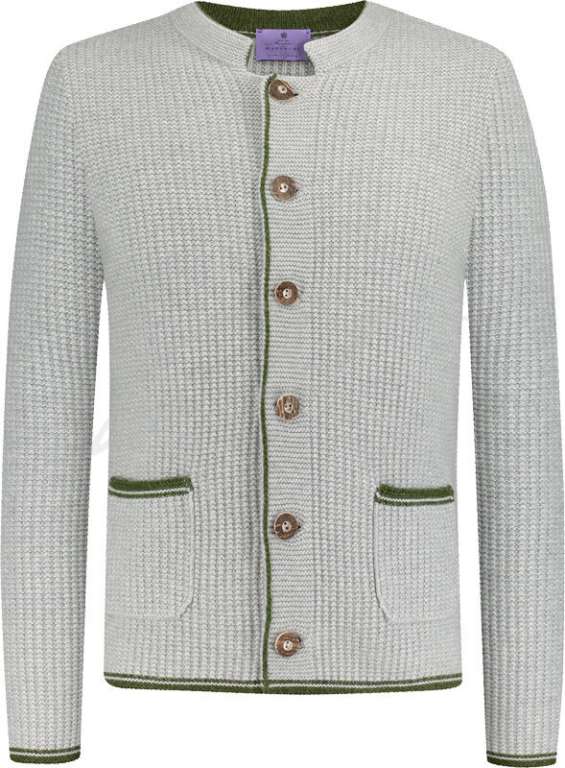 Мужской вязаный кардиган на пуговицах прекрасно дополнит стильный осенний образ и согреет во время охоты или прогулки в прохладную погоду. При изготовлении модели Ernestus использован высококачественный кашемир - легкий, приятный к телу и теплый материал. На рукавах усилены локти для защиты от протирания, также для удобства имеется два кармана.