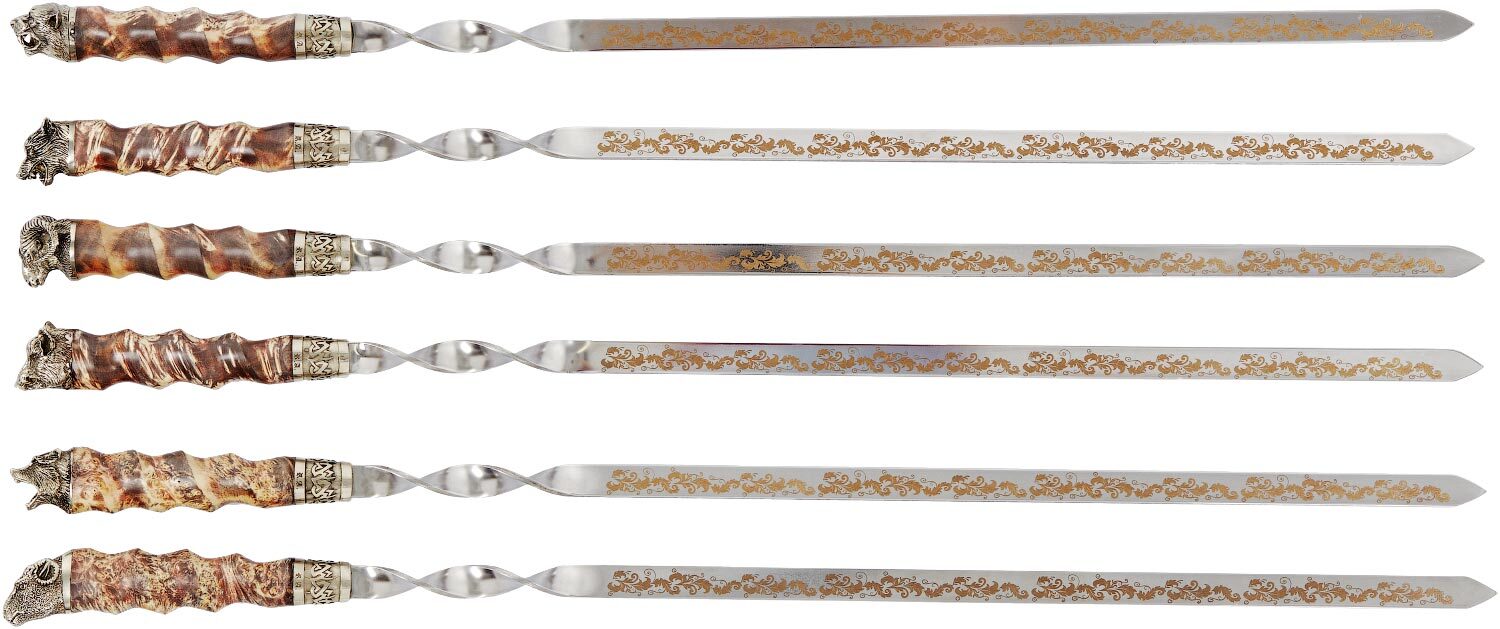 - 6 шампуров из нержавеющей стали с гравировкой.