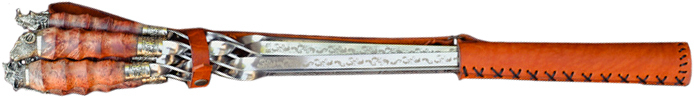 Мастерская R.A. изготавливает прекрасные шампуры ручной работы из нержавеющей стали, а рукоятки для них из природных материалов. Навершия рукоятей в виде животных или персонажей фольклора выполняются литьём в индивидуальной манере. Также для хранения и транспортировки предусматриваются различные приспособления, такие как кожаные колчаны, деревянные стойки или футляры.