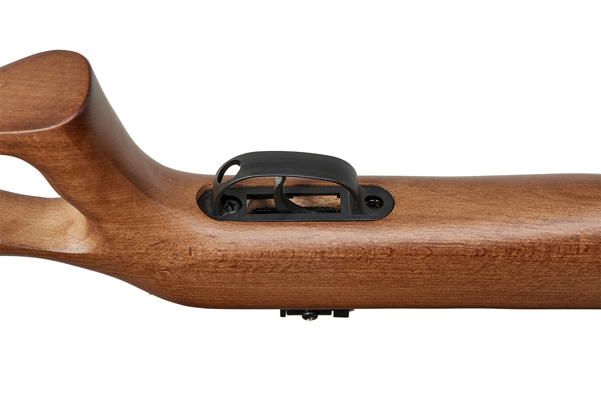 Ложе выполнено из дерева, пистолетная рукоятка имеет удобную выемку для большого пальца, а сам приклад имеет симметричные подщечники и резиновый тыльник с насечками. УСМ нерегулируемый, а предохранитель автоматический в виде ползунка и находится позади ствольной коробки. Такой формат ложа удобен для стрельбы как правой, так и левой рукой.