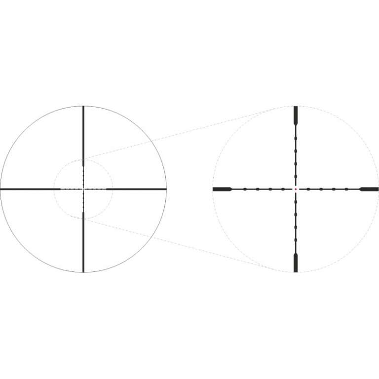Прицельные метки Jaeger располагаются во второй (задней) фокальной плоскости – вне зависимости от выбранной кратности, метка остается тонкой и не перекрывает изображения цели. Центр прицельных меток подсвечивается. Колесо изменения яркости подсветки имеет промежуточные «нулевые» положения, что позволяет максимально быстро отключить подсветку, так же как и вернуться к предыдущему положению яркости. Интенсивность подсветки меняется в широких пределах, есть режим для использования прицела с установленным за окуляром прибором ночного видения.