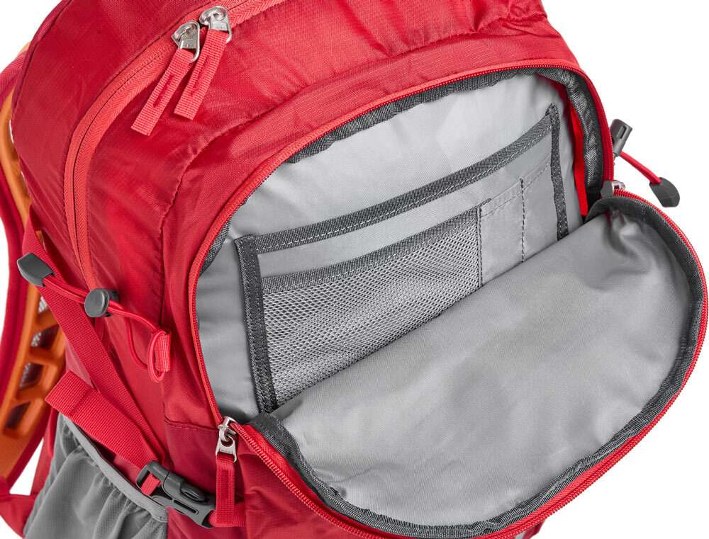 Рюкзак Camper оснащен удобной Х-образной подвесной системой, которая используется в первую очередь для рюкзаков, используемых для занятий видами спорта, требующими интенсивных движений. Благодаря крестообразно расположенному стальному каркасу и прочному набедренному ремню с мягкими вставками, основная часть нагрузки перераспределяется на бедра. Особенностью данной системы является специальная охватывающая каркас сетка, которая создает пространство между рюкзаком и спиной и такими образом обеспечивает максимальную вентиляцию. При желании каркас можно извлечь, облегчив рюкзак.