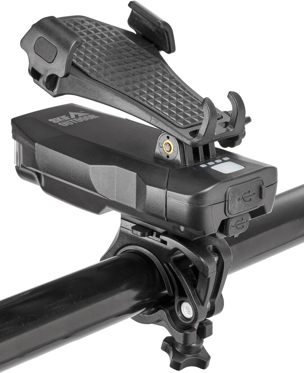 Удобство и надежность – отличительный признак новинки от Skif Outdoor велосипедного фонаря Smart C-Lamp. Помимо своей основной функции, модель может использоваться и для крепления телефона. Угол наклона крепежа легко регулируется. Сам фонарь оснащен интегрированным аккумулятором мощностью 4000 mAh, который гарантирует бесперебойную работу в течении 3 часов в максимальном режиме и 4 часа в среднем, а также позволяет заряжать телефон. Выносная кнопка дает возможность управлять режимами освещения и подавать звуковой сигнал, не отвлекаясь от вождения. Корпус из прочного пластика и класс защиты IPx4 защитит от влаги во время непогоды.