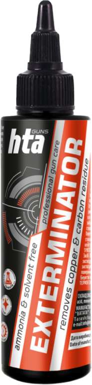HTA Exterminator – это средство для чистки оружия от омеднения и нагара в стволе. Оно подходит для всех видов оружия и имеет колпачок-капельницу для удобного нанесения. Использование:
