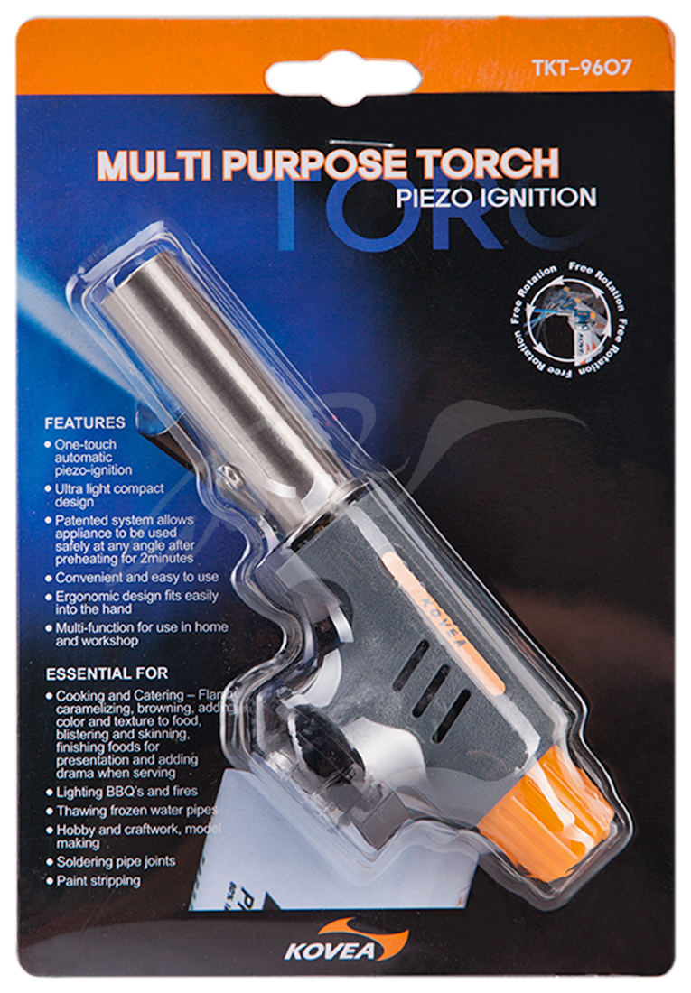 Резак Kovea Multi Purpose газовый резак с пьезоподжигом. Направленная газовая струя с температурой около 1300 град., достаточной для плавления меди. Рассчитан для установки на высокий, цанговый газовый баллон KGF-0220.